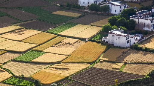 清晨,瓦藍(lán)瓦藍(lán)的天空云霧繚繞,周圍的景物一片朦朧,就好像童話里的仙境,一會兒,太陽從東邊冉冉升起,霧也漸漸消失,村子里屋頂上飄著裊裊煨桑的煙子,我站在山岡上從高處向下俯望,只見高山峽谷之中,層層翠綠的梯田簇?fù)碇l(xiāng)城特有的白藏房,山下的田野,就像一片金色的海洋,將秀麗的田園裝扮得更加如詩如畫。一陣晨風(fēng)吹過,麥田上蕩起了一道道金色的波紋,遠(yuǎn)處傳來了畫眉鳥的歌聲,我被眼前的一切迷住了,仿佛一切都靜止了,她讓我的夢從這里開始。