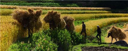 鄉(xiāng)村振興新時代,歡樂共慶豐收節(jié)! 春種秋收,春華秋實。當(dāng)農(nóng)村延續(xù)了成百上千年的文化與美景、凝結(jié)了無數(shù)辛勤與智慧的豐收果實和農(nóng)民對美好生活的期待,金秋九月,五谷豐收,瓜果飄香。人們在收獲的喜悅中迎接“中國農(nóng)民豐收節(jié)”。寒來暑往,秋收冬藏。笑容寫在農(nóng)牧民臉上,幸福留在農(nóng)牧民心里,處處都似披了一身霞光。