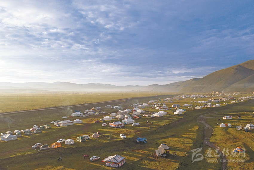 金馬草原以寬、平而著稱,藍天白云和雪山草地融為一體,明媚陽光和朵朵帳房風景如畫。傳說金馬草原腳下有一匹金馬,又傳說在這里曾發(fā)現(xiàn)過一塊馬頭形金塊,后人為祈禱福祉而得名,碧草連天,駿馬奔騰,千里沃野,牛羊成群。景區(qū)主要以草原風光和游牧部落風情為主,加上宗教文化的融入,使金馬草原旅游區(qū)成為集觀光、娛樂、探秘、朝拜、餐飲等于一體的景區(qū),游客不僅可以享受淳厚濃郁的民族風情,還可以體驗獨具特色的游牧部落文化。