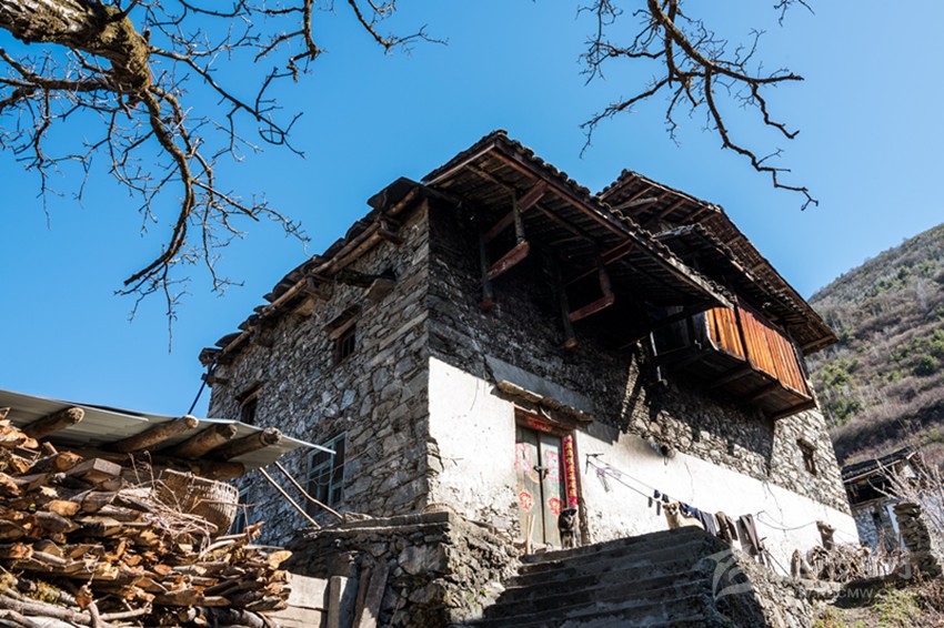 魚通人的房屋符合古人對居所背山面水的要求,多依山而建。房屋為木石混合結(jié)構(gòu),以片石木材和黃泥為主要材料建成,當?shù)厝朔Q之為“碉房”。房屋用石塊壘起,以木頭為墻筋,每隔一定高度,橫砌進入石塊,融為一體,使之更為堅固牢靠?!暗锓俊?/span> 一般為三層或四層,呈四角或六角形。底層為關(guān)牲畜。第二層為“堂屋”, 在過去,是集做飯、吃飯、烤火、家人日?;顒訛橐惑w的場所,地上設(shè)有火塘、灶,并在火塘上設(shè)石制三腳鍋莊或鐵三腳。第三層為各居室,有的設(shè)有貯藏室和會客屋。頂層為經(jīng)堂,室外為曬壩,作打場、曬場用。有些在外側(cè)設(shè)有一小吊腳樓,可堆放雜物。隨著時間的流逝,古老的碉房已無法滿足現(xiàn)在居民的需求,已很少有人居住,而新式碉房在傳統(tǒng)的基礎(chǔ)上開始出現(xiàn)。