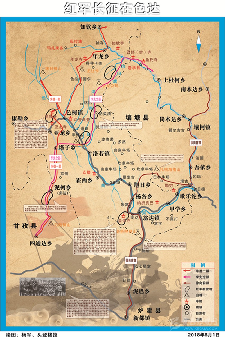 ●由王建安率領(lǐng)的紅四軍十二師、獨(dú)立師于六月二十九日從爐霍蝦拉沱出發(fā),七月三日到達(dá)色達(dá)。