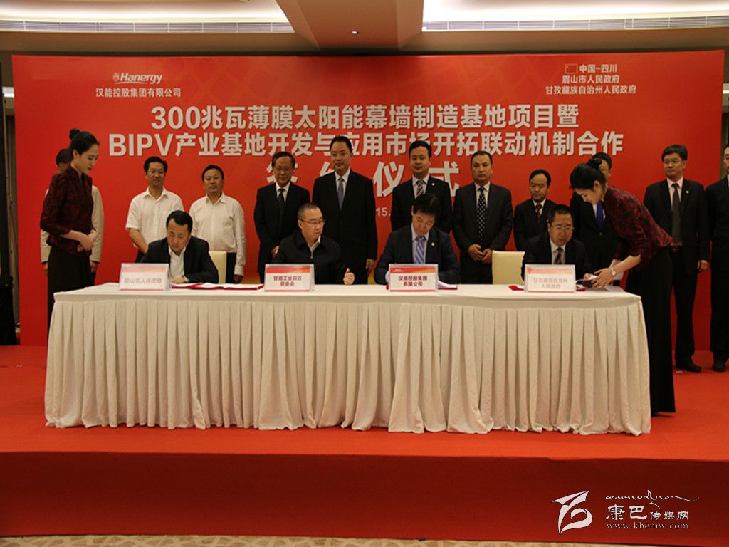 本網(wǎng)訊(記者 楊杰 文/圖)4月24日下午,由漢能控股集團(tuán)投資建設(shè)的300兆瓦薄膜太陽能幕墻制造基地項(xiàng)目暨BIPV產(chǎn)業(yè)基地開發(fā)與應(yīng)用市場開拓聯(lián)動機(jī)制合作簽約儀式在成都錦江賓館舉行。