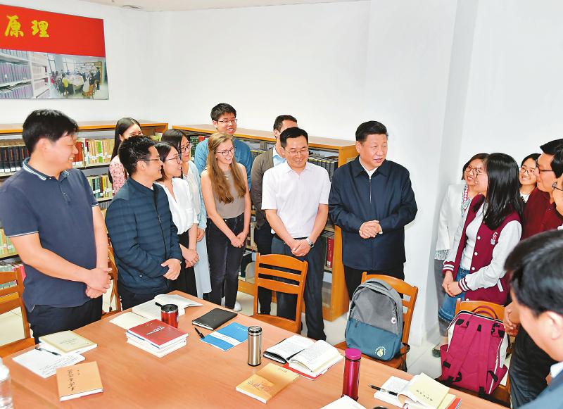 5月2日,中共中央總書記、國(guó)家主席、中央軍委主席習(xí)近平來(lái)到北京大學(xué)考察。這是習(xí)近平在北京大學(xué)馬克思主義學(xué)院,與正在就“解讀新時(shí)代”進(jìn)行座談交流的中外學(xué)生親切交談。 新華社記者 李濤 攝