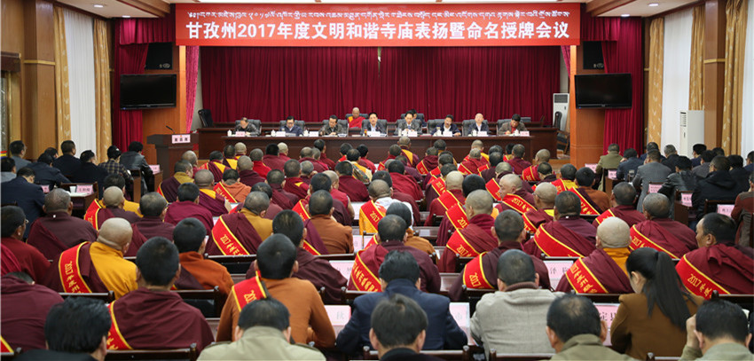 本網(wǎng)訊 近日,州委、州政府召開會議為2017年度文明和諧寺廟命名授牌,并表揚愛國守法模范僧尼。州委書記劉成鳴出席會議并講話。他希望,廣大僧尼對標(biāo)“政治合格、愛國愛教、遵規(guī)守法、持戒精修、團(tuán)結(jié)進(jìn)步、利益眾生”六個標(biāo)準(zhǔn)做好表率,教育引導(dǎo)廣大僧尼和信教群眾“感黨恩、愛祖國、守法制、奔小康”,積極推動宗教界與全州脫貧奔康和長治久安進(jìn)程相協(xié)調(diào)、與社會主義社會相適應(yīng)。州委副書記、州長肖友才主持會議。州人大常委會主任李康、州政協(xié)主席向秋出席。