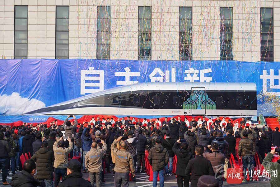 2021年1月13日上午,具有完全自主知識產(chǎn)權(quán)的高溫超導(dǎo)高速磁浮工程化樣車及試驗(yàn)線在西南交通大學(xué)九里校區(qū)正式啟用。華小峰 攝