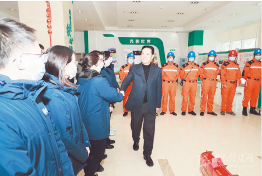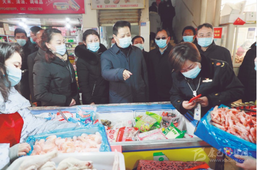 圖為劉成鳴檢查節(jié)前市場保供情況。