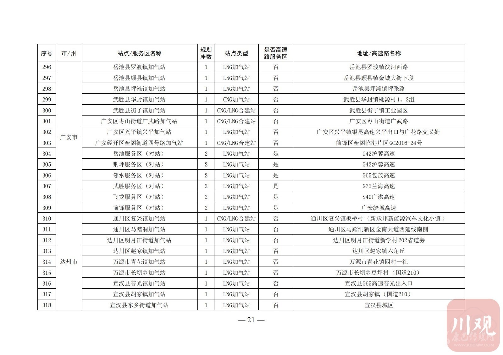 日前,四川省發(fā)展和改革委員會、四川省能源局印發(fā)《四川省天然氣汽車加氣站布局方案(2021-2025年)》(以下簡稱《方案》)?!斗桨浮诽岢龅?025年,四川將規(guī)劃新建加氣站500座(含高速公路服務區(qū)141座),其中,CNG加氣站15座、LNG加氣站401座、L-CNG加氣站8座、CNG/LNG合建站76座。