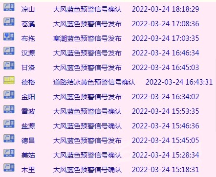 24小時內(nèi),四川多地大風(fēng)藍色預(yù)警信號生效中↘