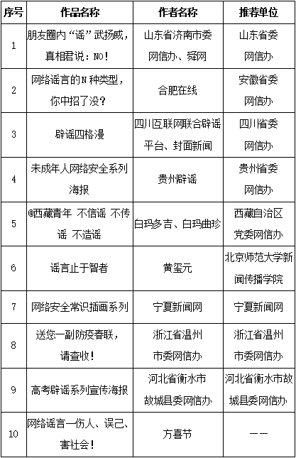 附:第五屆中國(guó)互聯(lián)網(wǎng)辟謠優(yōu)秀作品獲獎(jiǎng)名單