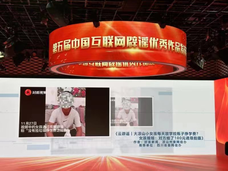由涼山州委網(wǎng)信辦、封面新聞制作的《云辟謠 | 大涼山小女孩每天放學(xué)撿瓶子掙學(xué)費(fèi)?女孩姐姐:對(duì)方給了100元誘導(dǎo)拍攝》(點(diǎn)擊查看作品)獲得網(wǎng)絡(luò)辟謠版塊社會(huì)民生類獎(jiǎng)項(xiàng)。