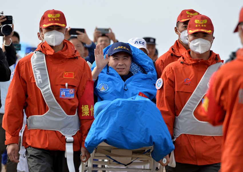 6月4日,神舟十五號(hào)載人飛船返回艙在東風(fēng)著陸場成功著陸,神舟十五號(hào)載人飛行任務(wù)取得圓滿成功。這是航天員費(fèi)俊龍揮手致意。 新華社 發(fā)