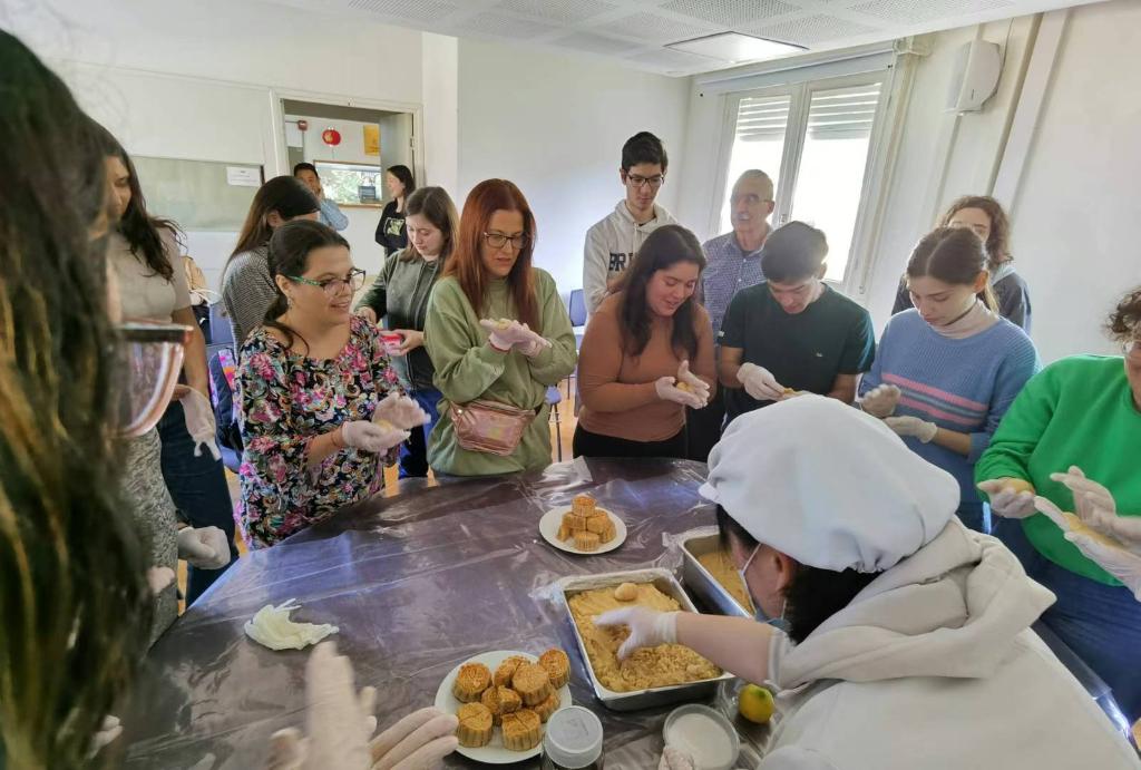 2023年9月29日,烏拉圭共和國大學孔子學院師生一起做月餅,歡度中秋節(jié)。