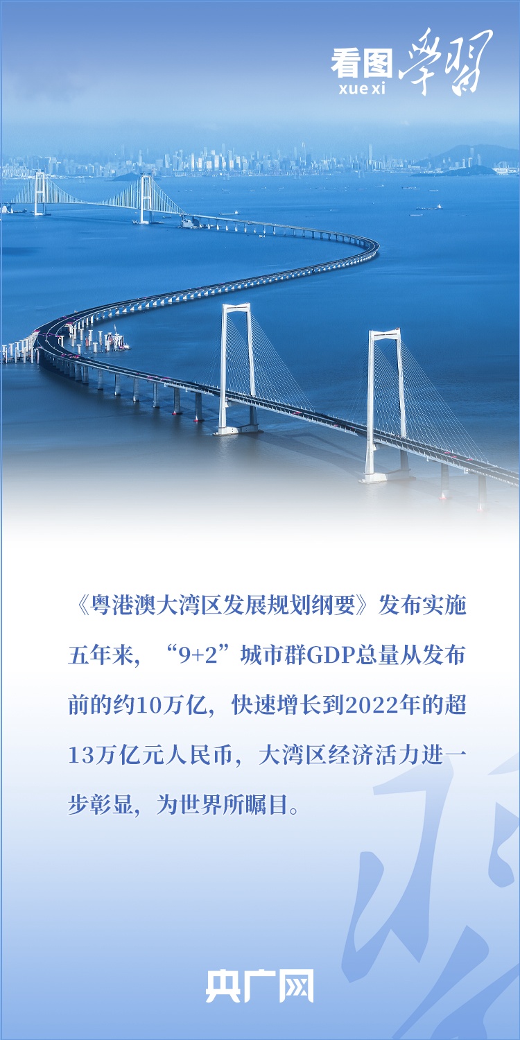 2019年2月,《粵港澳大灣區(qū)發(fā)展規(guī)劃綱要》正式發(fā)布。五年來,習(xí)近平總書記多次作出重要部署和深刻闡述,引領(lǐng)推進(jìn)粵港澳大灣區(qū)高水平建設(shè)??倳洀?qiáng)調(diào),要使粵港澳大灣區(qū)成為新發(fā)展格局的戰(zhàn)略支點(diǎn)、高質(zhì)量發(fā)展的示范地、中國(guó)式現(xiàn)代化的引領(lǐng)地。一起來學(xué)習(xí)!