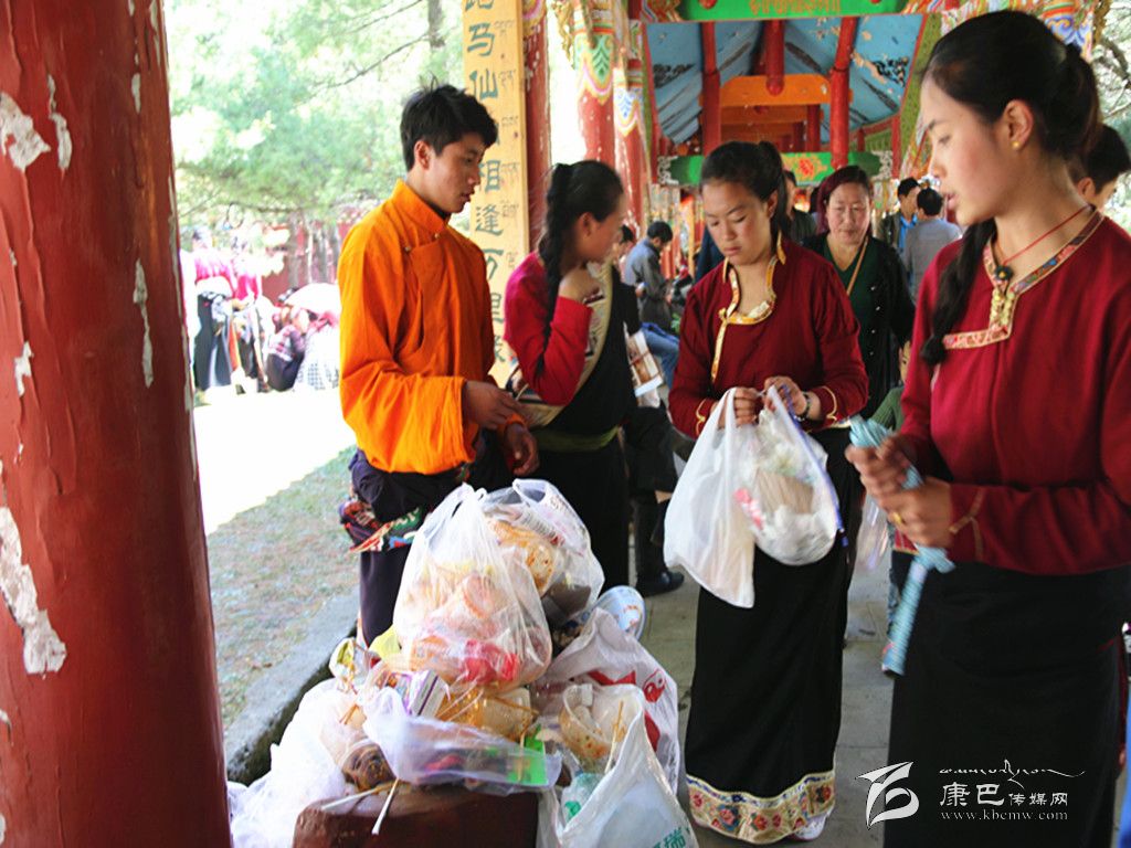 本網(wǎng)訊(益西貢布文/圖)5月25日,是康定的傳統(tǒng)節(jié)日——“四月八”跑馬山國際轉(zhuǎn)山會。這一天,數(shù)以萬計的游客從四面八方慕名而來、云集康定,人們上跑馬山拜佛,參加轉(zhuǎn)山會各項活動,以祈豐年。由于游人太多,被四處丟棄的垃圾給跑馬山的環(huán)境造成了一定壓力。在熙熙攘攘的在人群中,記者發(fā)現(xiàn)有不少學(xué)生模樣的年輕姑娘和小伙子手上捧著環(huán)保垃圾袋,穿梭于人群中忙著撿垃圾,而后又放到指定地點。在交談中記者了解到,他們是來自四川省藏文學(xué)校的學(xué)生,慕名前來參加跑馬山轉(zhuǎn)山會的同時,自愿發(fā)起義務(wù)撿拾垃圾行動。他們的這一行動得到了游客的贊許,成為了節(jié)日里一道最美的風(fēng)景。圖為學(xué)生正在收集垃圾。