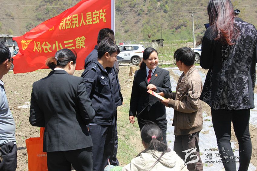 瀘定縣法院法官深入鄉(xiāng)村發(fā)放法制宣傳資料。