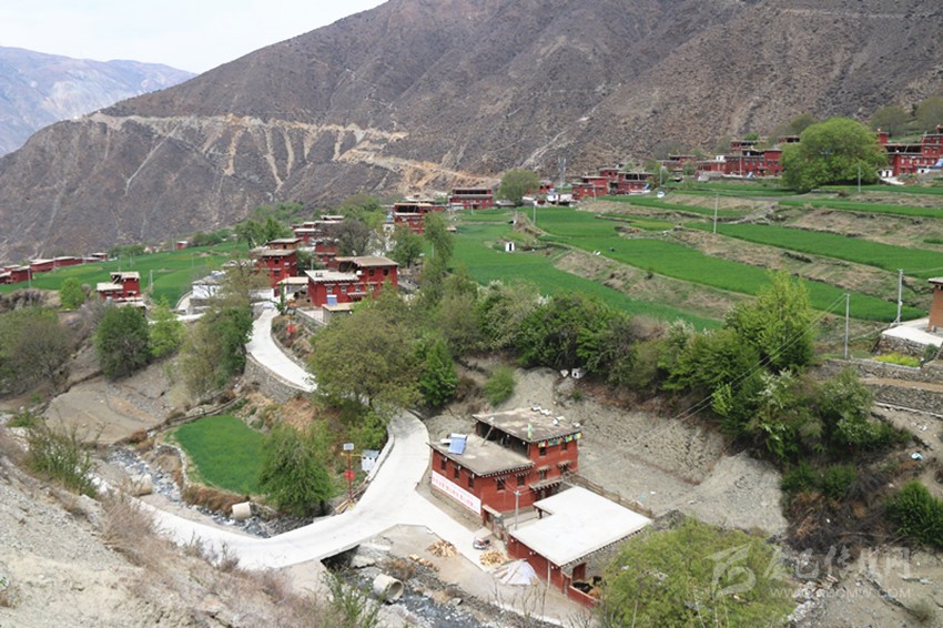 高山深谷之中,青稞翠綠、鳥語花香。蜿蜒的通村硬化路將四五個自然村落連成一片,整潔的聯(lián)戶路將一棟棟紅色藏房綴成了幾個小圈,仿佛是經(jīng)過精心擺放的紅瑪瑙項(xiàng)鏈;太陽能路燈錯落有致,點(diǎn)綴在平坦寬闊的水泥村道上,與兩旁漂亮的紅藏房相得益彰,顯得特別賞心悅目;村中心的交叉路口,幾名群眾正忙著給新建的青稞面粉加工廠房安裝設(shè)備;村民活動室里,幾名村干部正在討論農(nóng)民夜校的事情;在房前屋后土地上,隨處可見頂著烈日勞作的群眾,他們有的在為青稞除草,有的在為豌豆施肥,還有的在檢查著自家的野生蜜蜂蜂箱……