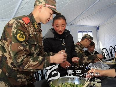 12月7日,康定6.3級地震后的第二個周末,這對甘孜州西康福利學校的孩子們來說,是一個開心的日子。當天上午,武警甘孜州支隊抗震救災一線官兵來到學校,與在這里生活學習的孤兒和特困生一起包餃子,度過了一個溫暖的周末。12歲的措姆性格靦腆,她把餃子皮攤在手心,一旁的戰(zhàn)士王兵舀了一勺餡放在餃子皮中央,可措姆怎么也沒法把餃子包得像模像樣。在王兵的輔導下,措姆很快學會包了一個漂亮的餃子。在學包餃子過程中,五六十雙手就包出五六十種餃子,看著自己的勞動成果,孩子們特別開心。吃過午飯,武警官兵們還精心安排了疊被子活動,在帳篷內(nèi)教孩子們怎么疊軍被。大家一起動手,你教我疊,熱鬧極了。(宋科霖 /文 郝勇 /攝)