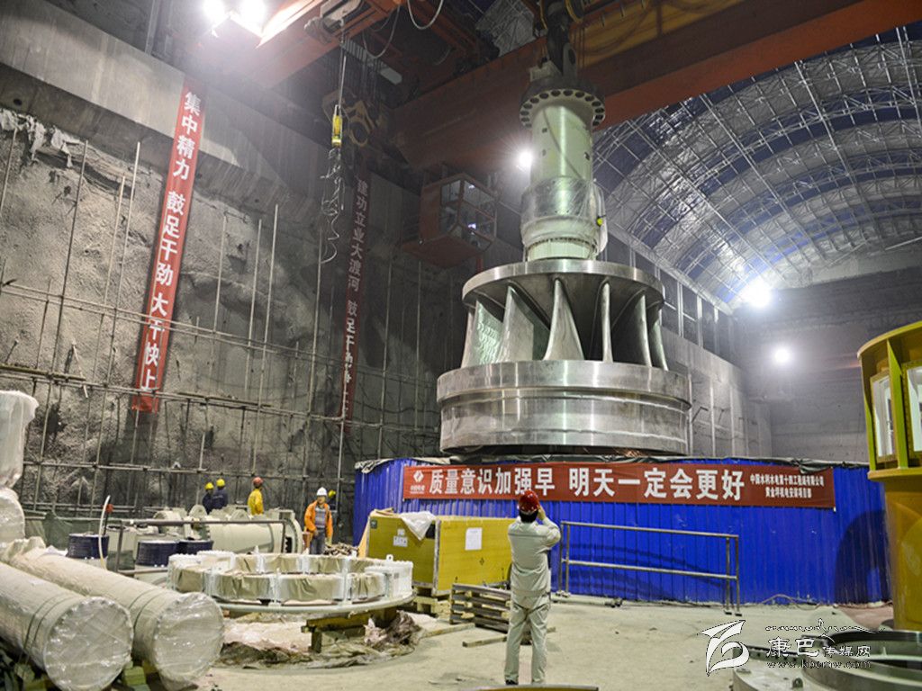 黃金坪水電站首臺機(jī)組轉(zhuǎn)輪吊裝就位