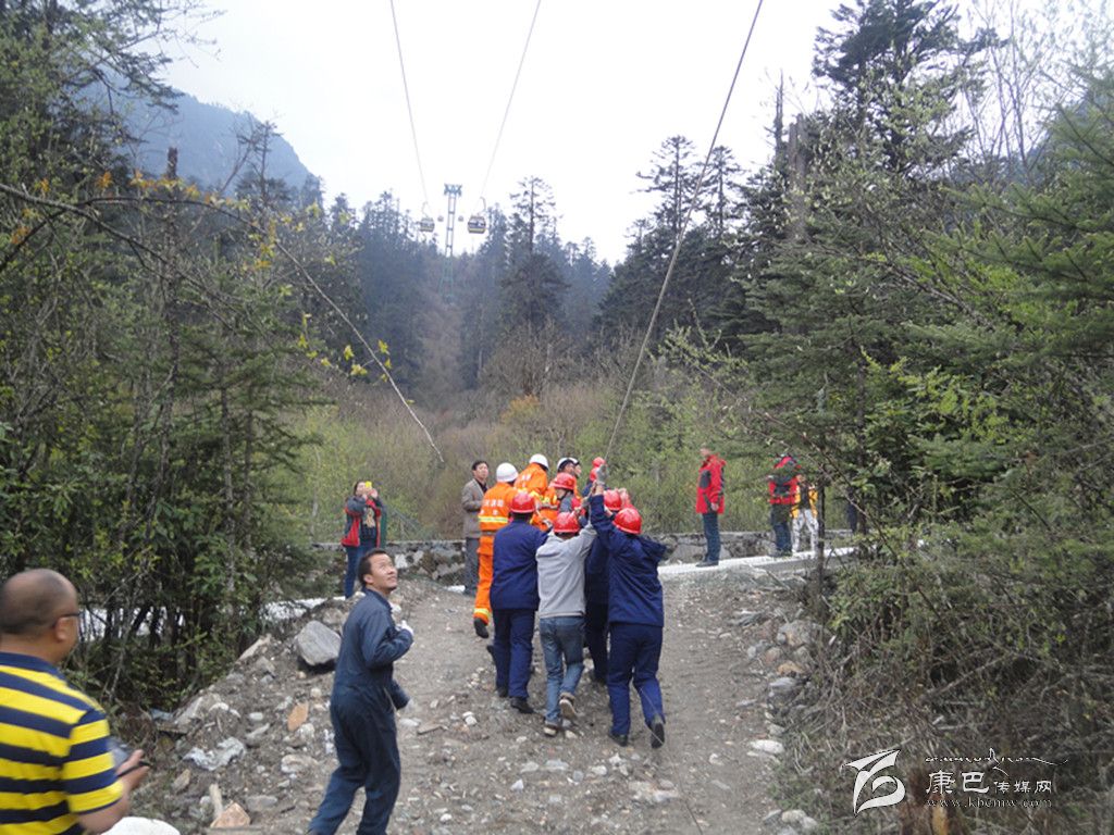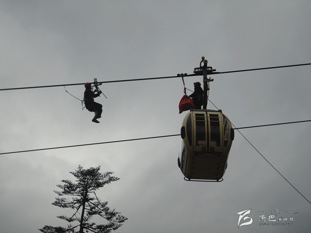 應急演練活動是模擬索道發(fā)生脫索故障,開展人工救護應急訓練。在演練活動中,海螺溝客運索道出現(xiàn)故障不能運轉(zhuǎn),在1C支架和2#支架之間,兩個車廂共有三名游客滯留空中。海螺溝旅游索道公司立即啟動應急預案,救護總指揮下達救援指令。后勤組成員對著車廂喊話,穩(wěn)定游客情緒。救護小組全體人員,安全、有序、迅速到達各自崗位,地面工作人員與空中救援人員相互配合,同時密切注意被困乘客的安全情況,正確操作各項程序,僅用半個小時就將被困乘客送到地面,安全完成營救。地面輔助救護人員立即對被營救人員進行現(xiàn)場檢查和救治,保障了被營救人員的生命安全,應急演練活動圓滿完成。