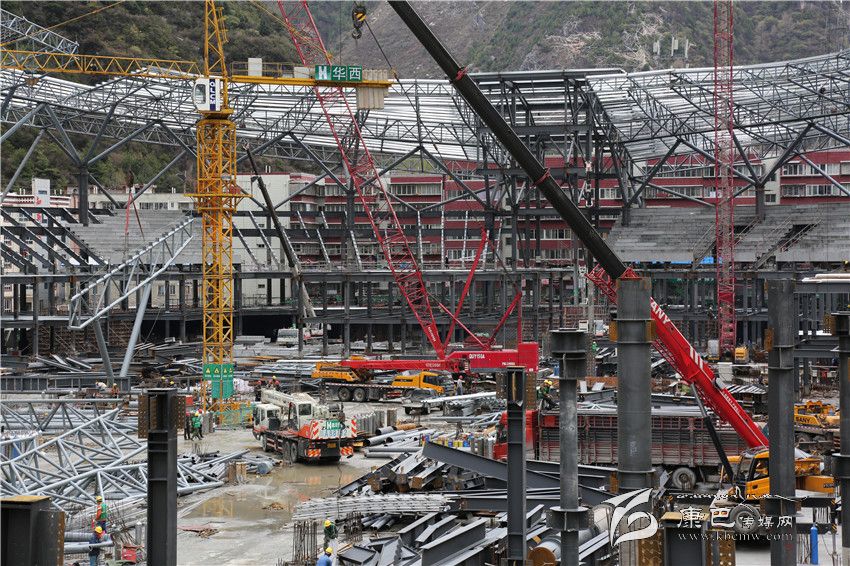 從規(guī)劃上看,高大上的新北門體育場堪稱甘孜州的“鳥巢”。由四川省第十三建筑公司承建的康定北門體育場改造工程,工程總投資2.4億元。截止目前,已完成投資1.4億元。停車場和看臺已初具規(guī)模;95%的鋼材已運達建設現(xiàn)場。據(jù)工程負責人介紹,北門體育場改造工程每天有300多人在施工,預計7月初大部分工程可以完工。