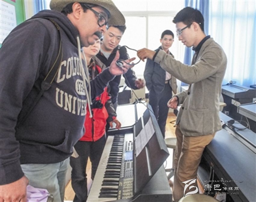 隨后,達(dá)哈爾·阿斯毫克一行來(lái)到教學(xué)區(qū),通過(guò)參觀學(xué)生閱讀室、多功能音樂(lè)訓(xùn)練室、多媒體教室了解了該校的硬件設(shè)施建設(shè)和綜合發(fā)展情況。在學(xué)生閱讀室,達(dá)哈爾·阿斯毫克和同伴們認(rèn)真聽(tīng)取了學(xué)校工作人員關(guān)于閱讀室內(nèi)圖書(shū)種類(lèi)、圖書(shū)使用情況的介紹;當(dāng)發(fā)現(xiàn)其中有不少圖書(shū)是鄉(xiāng)城的地方性著作時(shí),一名尼泊爾記者當(dāng)即感慨“太了不起了!”。親自試用教室里陳放的電子鋼琴之后,印度《西隆時(shí)報(bào)》德里站首席記者納亞克表示,“眼前所看到的一切然我對(duì)中國(guó)教育的發(fā)展感到驚奇。”他這一說(shuō)法也很快引起同行者的共鳴。