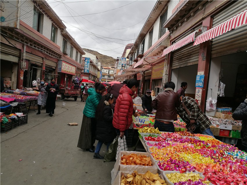 筆者在該縣副食店、超市看到,商家的各種促銷優(yōu)惠活動(dòng),吸引了不少農(nóng)牧民群眾,前來購買年貨的群眾熙熙攘攘。各種涼鹵食品店的生意也相當(dāng)火爆?!翱爝^年了,吃的、用的和穿的都得買點(diǎn),過完藏歷年,就要忙春耕生產(chǎn)了?!笔掷锪嘀蟀“曦浀慕荡霛M臉喜悅地說。
