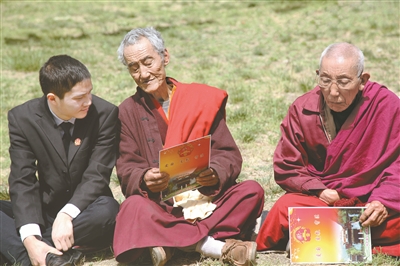 我州司法行政系統(tǒng)首創(chuàng)的“菜單式”普法深深吸引了農(nóng)牧民群眾。在農(nóng)牧區(qū),農(nóng)牧民群眾主動(dòng)和司法局工作人員“對(duì)接”。印有“別人借了我的錢不還,我可以通過法院幫助要回嗎?”“出去打工時(shí),公司讓交保證金怎么辦?”等法律問題的普法菜單在老百姓手中成為了熱議話題?!薄耙郧坝龅揭恍┥钌系膯栴}不知道怎么辦,現(xiàn)在政府給我們發(fā)了這樣的普法‘菜單’,我們可以根據(jù)自己想了解的內(nèi)容請(qǐng)工作人員進(jìn)行解答?!苯?,爐霍縣宜木鄉(xiāng)村民尼瑪獲悉自己需要的法律知識(shí),十分高興。