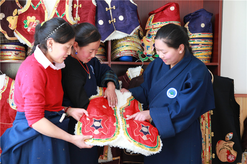色達(dá)牧民服裝加工成為增收產(chǎn)業(yè)。 本網(wǎng)記者 田杰 攝