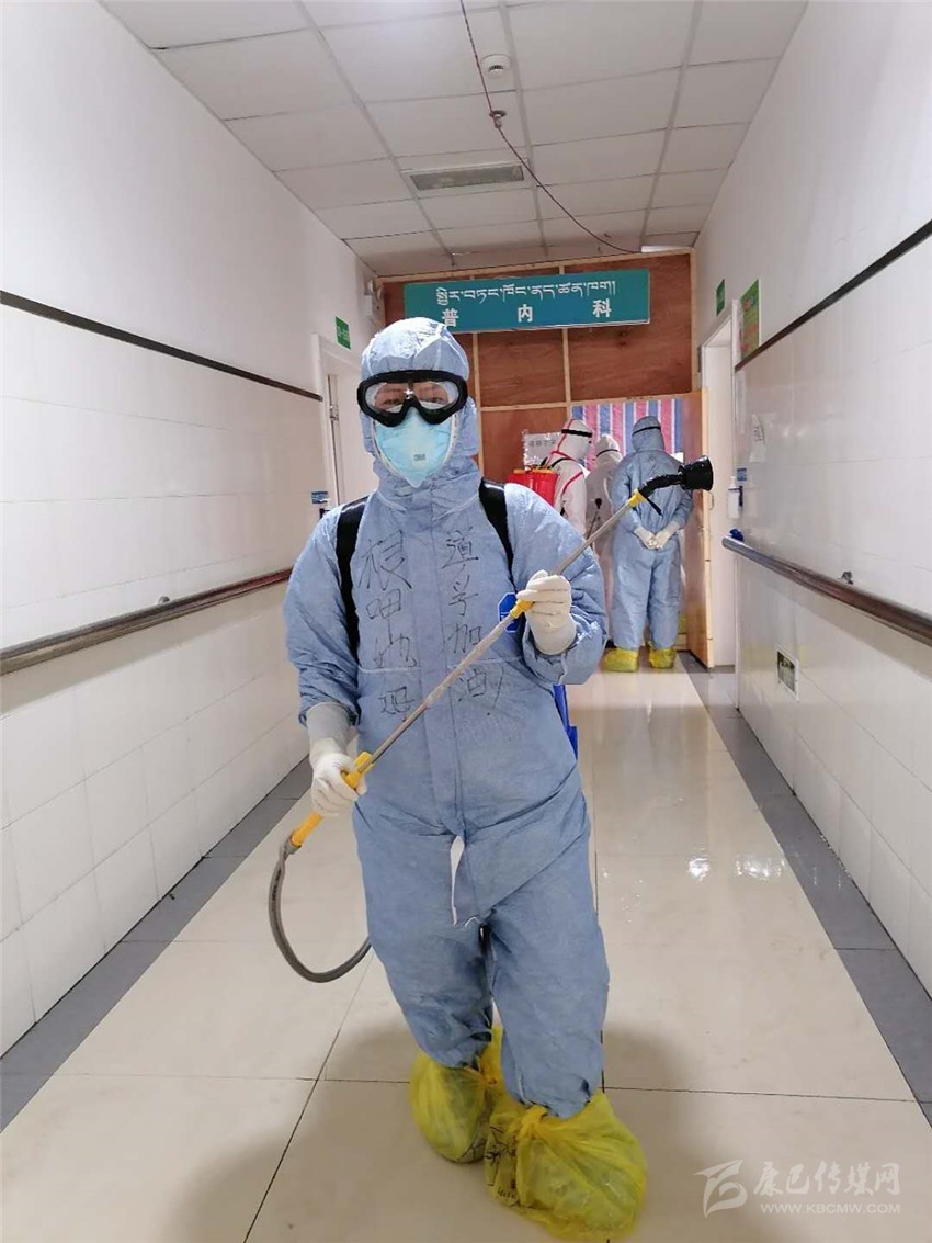除了日常護(hù)理,根呷她姆的還要負(fù)責(zé)每日病房的消毒工作、垃圾清理以及清潔衛(wèi)生工作。“消毒工作格外重要,必須做到不漏一個(gè)死角?!备人窂?qiáng)忍著84消毒液刺激引起的嗆咳及生活垃圾引起的惡心發(fā)嘔,一絲不茍,任勞任怨,做好每一天的消殺清潔工作,讓病毒無處遁形。在同事面前她是護(hù)士長、家長,在病人面前,她是護(hù)士、護(hù)工、清潔工、家屬、心理老師……根呷她姆每天在各種角色間轉(zhuǎn)換自如,不怕臟、不怕累、不怕苦,拼盡全力只為打贏這場(chǎng)沒用硝煙的戰(zhàn)爭(zhēng)!