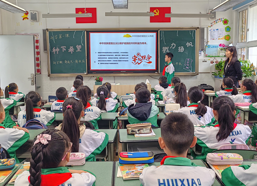 “同學(xué)們好,新學(xué)期開(kāi)始了,今天我們一起來(lái)學(xué)習(xí)什么是愛(ài)國(guó)……”康定市回民小學(xué)五年級(jí)二班教室內(nèi),在班主任胡康瓊引領(lǐng)下,學(xué)生代表為同學(xué)們講授著開(kāi)學(xué)第一課。課堂上,他以愛(ài)國(guó)主義教育為主題,通過(guò)視頻、文字等資料,以講述和提問(wèn)的方式引導(dǎo)同學(xué)們理解愛(ài)國(guó)的重要性。
