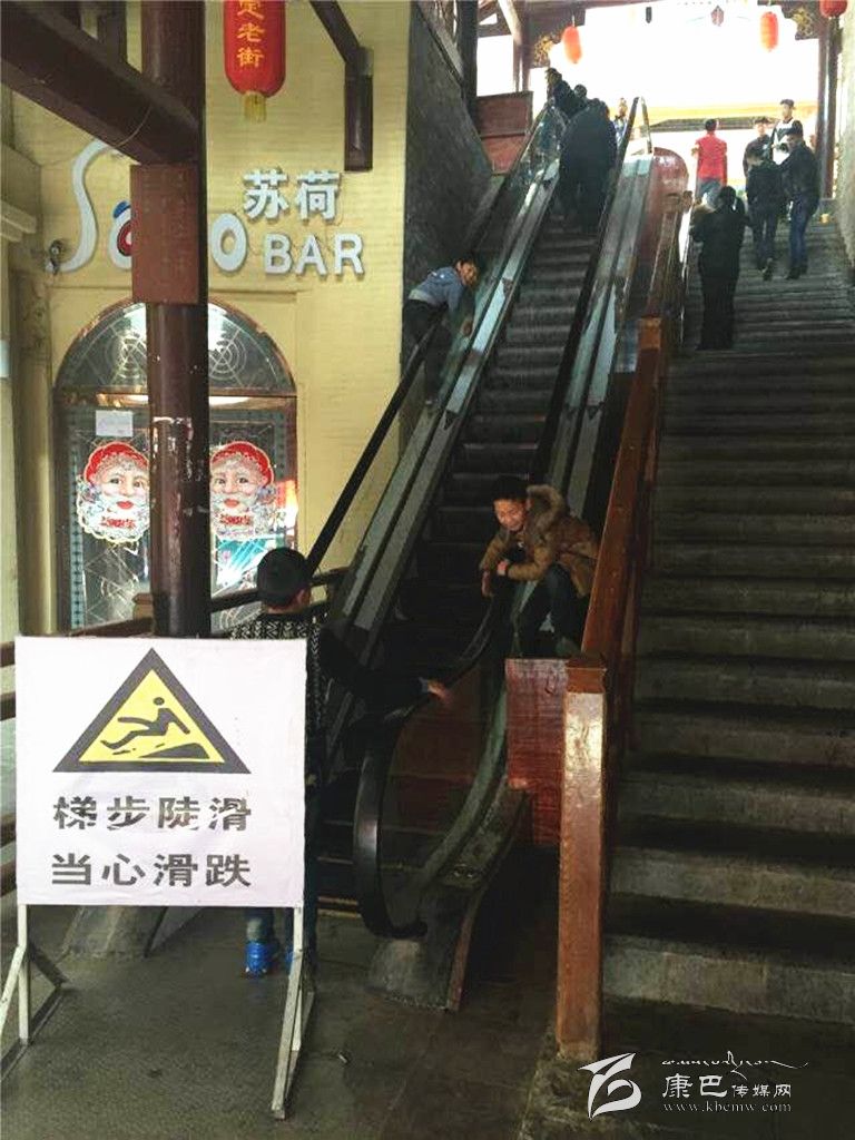 “唰,唰,唰”一群10歲出頭的孩子們從停運電梯的扶手上飛速滑下,這是記者在康定“溜溜城”商業(yè)步行街下方出入口處電梯看到的一幕??匆娪浾咴谂恼?,小學(xué)四年級的小亮(化名)絲毫沒有慌亂,嫻熟的翻越動作表明這里是他和朋友們的常來之地。記者目測電梯長度約有60米左右,上下落差較大,在電梯扶手上玩耍的孩子極易受傷。小亮和朋友們卻不以為然:“這個梯子好像游樂園里的激流勇進,好好耍哦!”孩子們完全忽略了潛在的危險。