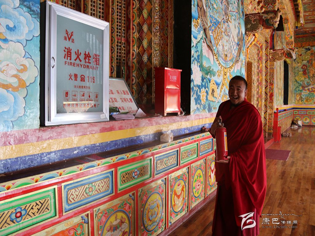 “僧人們每天在這里修行和生活,對我們僧人來說,這個廟就是我們的家,我們就是廟的主人。寺廟的防火安全我們義不容辭。”每天傍晚時分,鄉(xiāng)城縣桑披寺的義務(wù)防火隊隊長則曲迪迪便帶領(lǐng)3名隊員依次查看各經(jīng)殿堂的酥油燈、哈達(dá)、經(jīng)書之間擺放距離是否符合要求,消防器材、設(shè)施是否完好有效,各廳堂安全疏散通道是否暢通等,排查寺廟火災(zāi)安全隱患。