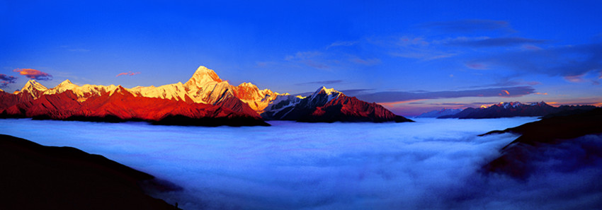 秋末冬初,雪山冰川、壯麗的高山峽谷、蒼莽的森林草甸、遼闊的高原牧場,雪山、藏寨、草場、海子、彩林繪成一幅五彩的畫卷,又是那么高遠(yuǎn)純凈。這是時(shí)間的分娩、秋天的醺醉和色彩的狂歡,紛至沓來的游客在大美甘孜,盡享太陽在藍(lán)天白云中噴薄而出那絢麗夢(mèng)幻的美景。
