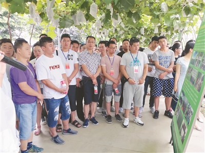 呷絨登珠(右二)正在眉山市學(xué)習(xí)產(chǎn)業(yè)發(fā)展經(jīng)驗(yàn)。