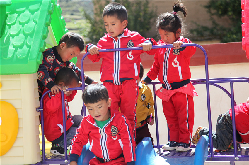 理塘縣濯桑鄉(xiāng)下汝村五歲的格絨澤西,去年9月就讀于下汝村幼兒園,現(xiàn)在簡(jiǎn)單的漢字、拼音、藏文字母能認(rèn)得到,從1可以數(shù)到20,唱兒歌跳藏舞特別開(kāi)心,這讓父親曲云十分高興,不然像以前只好在家中玩?;驇У椒拍恋牟輬?chǎng)、勞作的地里。每次父親帶她上縣城,格絨澤西都十分羨慕城里的孩子能背上小書包上幼兒園?!罢鏇](méi)想到,我家的小孩在村里就能讀幼兒園,還學(xué)到了知識(shí)?!鼻聘吲d地說(shuō)。